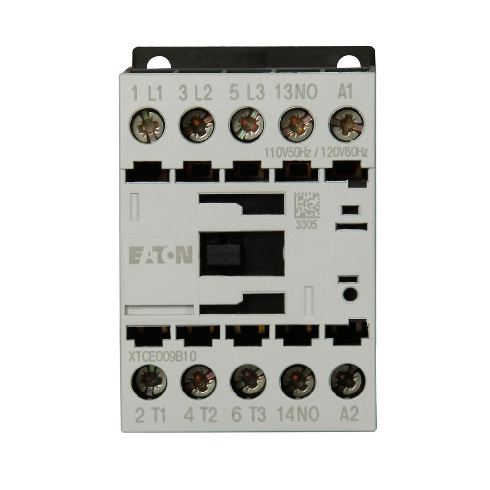 Eaton XT IEC contactor, 9A, 110 Vac 50 Hz, 120 Vac 60 Hz, 1NO, 9A, Frame B, 45 mm, 50-60 Hz, 0.5, 1, 1.25/ 3, 3, 5, 7.5 hp (1/3PH @115, 200, 230/200, 230, 460, 575 V), Three-pole, Screw terminals, Full voltage non-reversing contactor